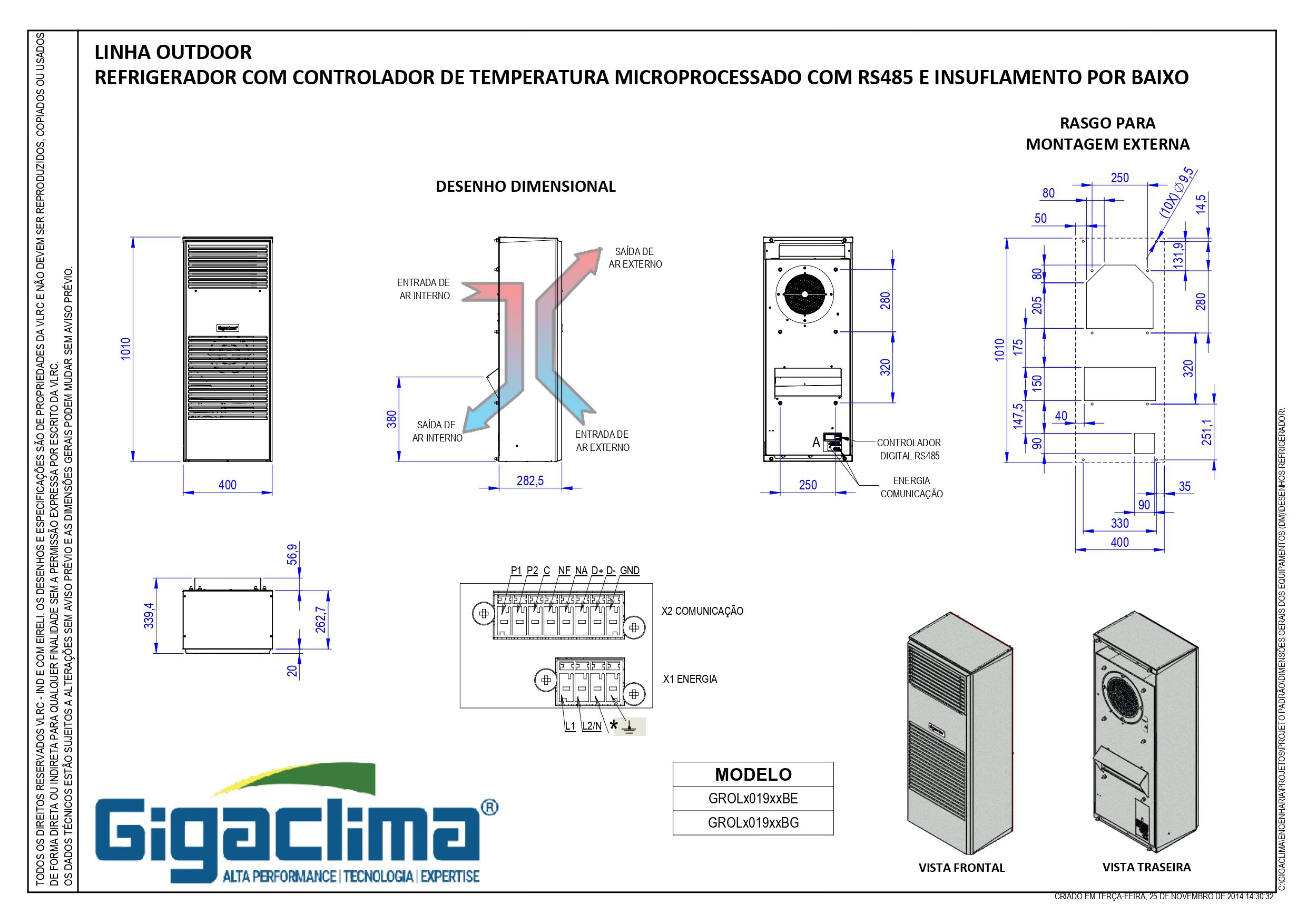 Tensão de Serviço: 1PH/220V/50-60Hz Faixa de Temperatura: +20 @ +50°C