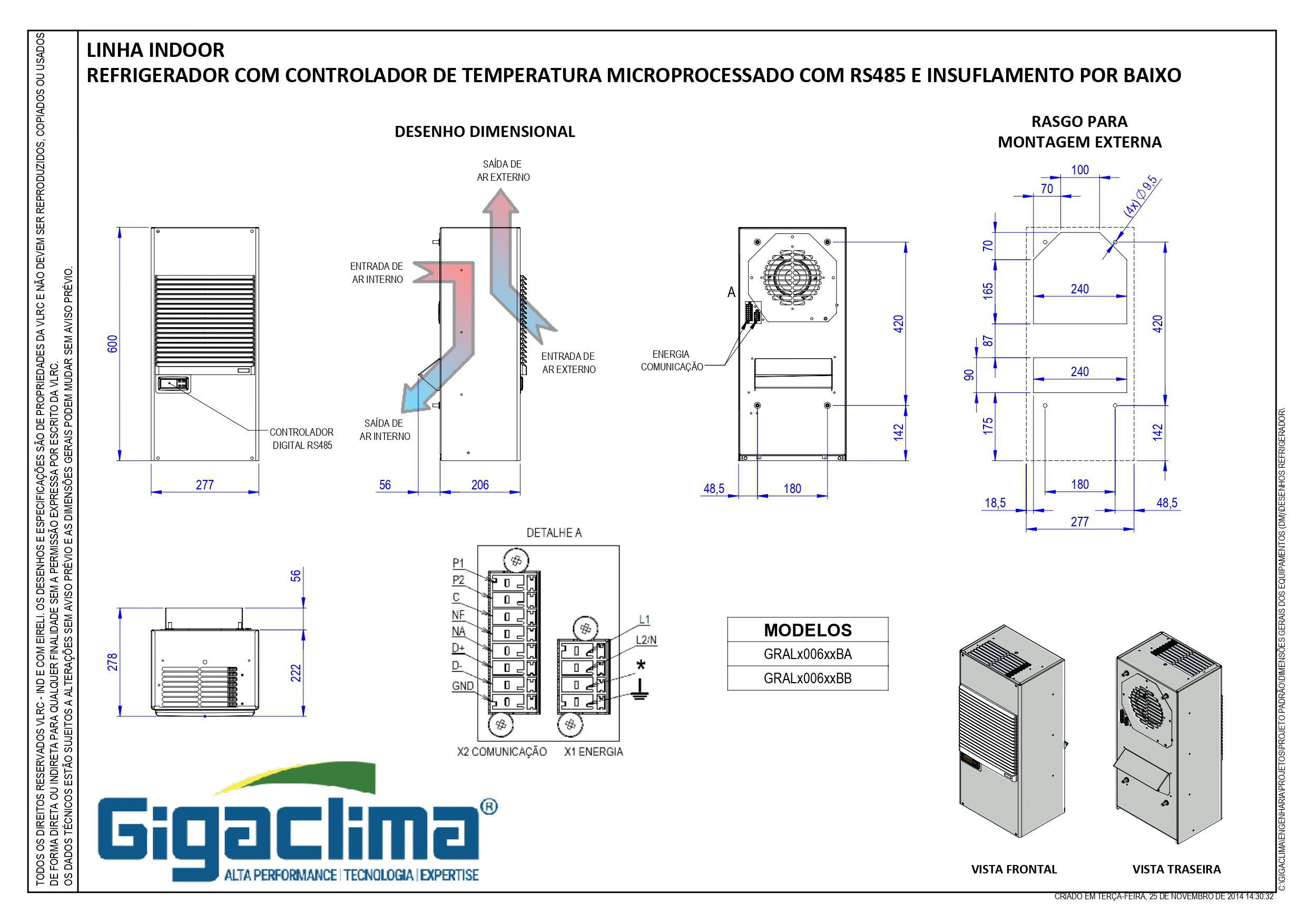 | Tensão de Serviço: 1PH/220V/60Hz | Faixa de Temperatura: +20 @ +50°C |