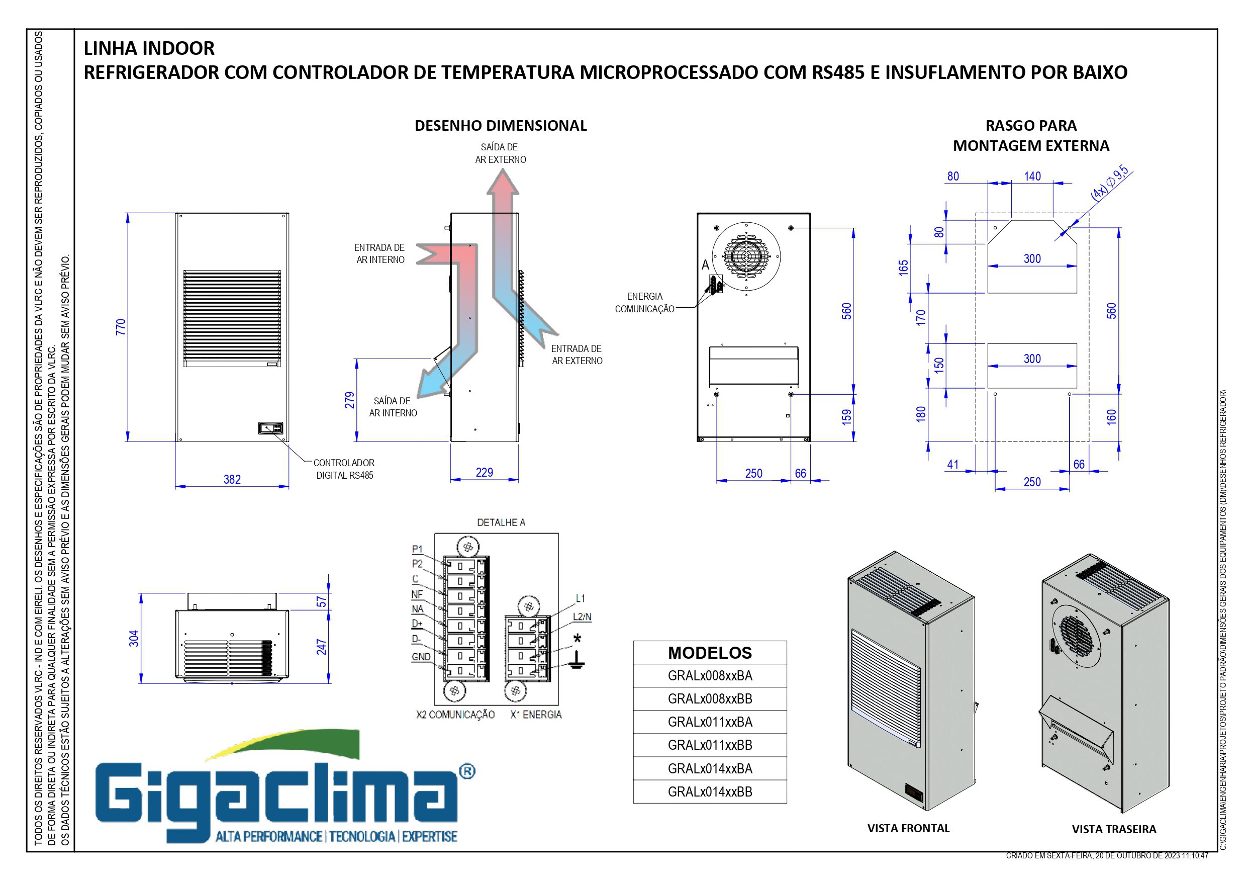| Proteção (curva C): 6A | Dimensão (H x C x P): 770 x 382 x 229mm |