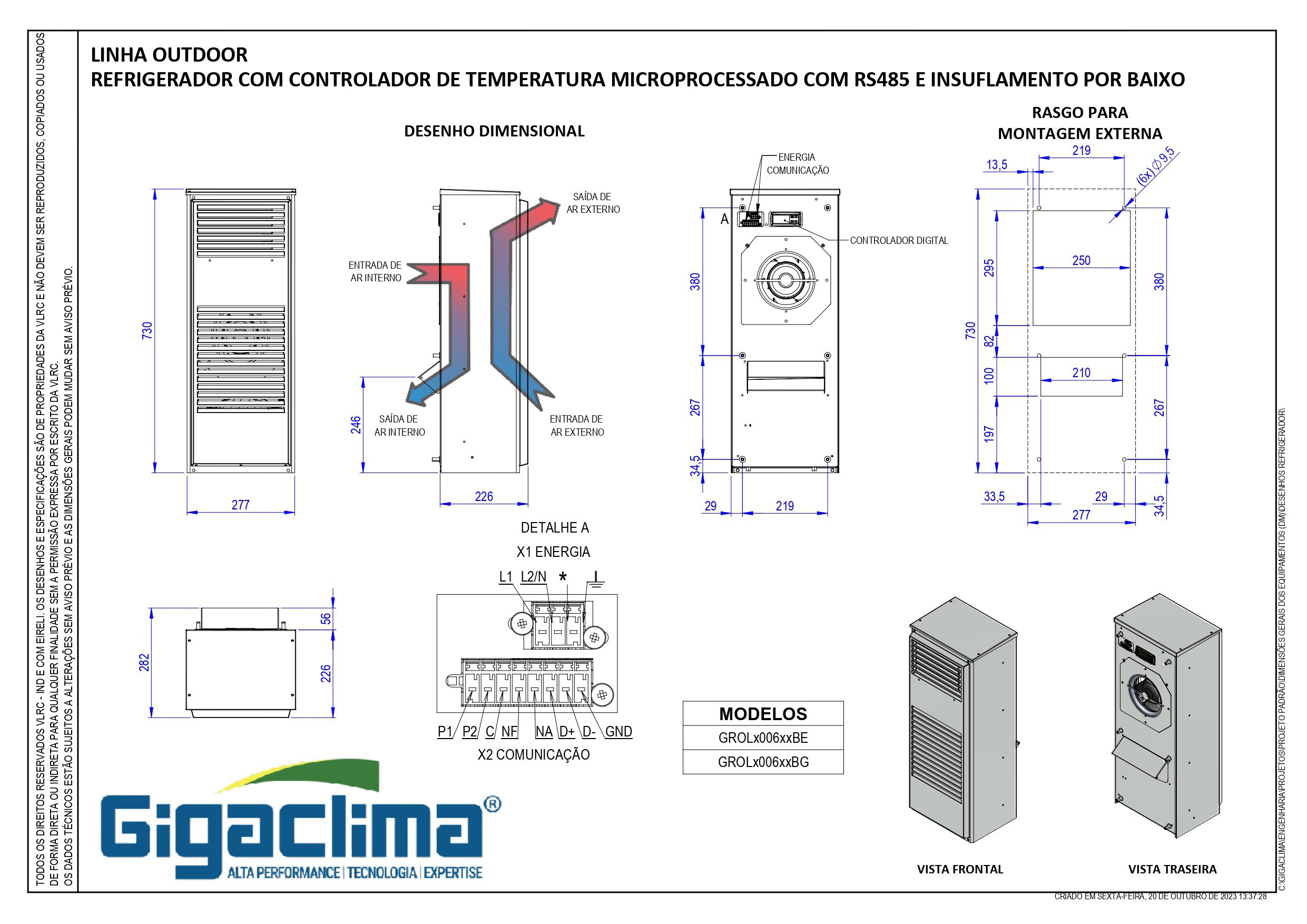 Tensão de Serviço: 1PH/220V/50Hz Faixa de Temperatura: +20 @ +50°C
